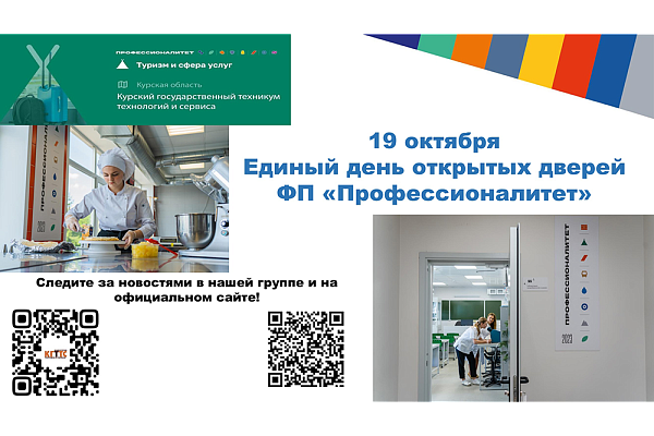 19 октября в кластерах Федерального проекта «Профессионалитет» пройдет Единый день открытых дверей.