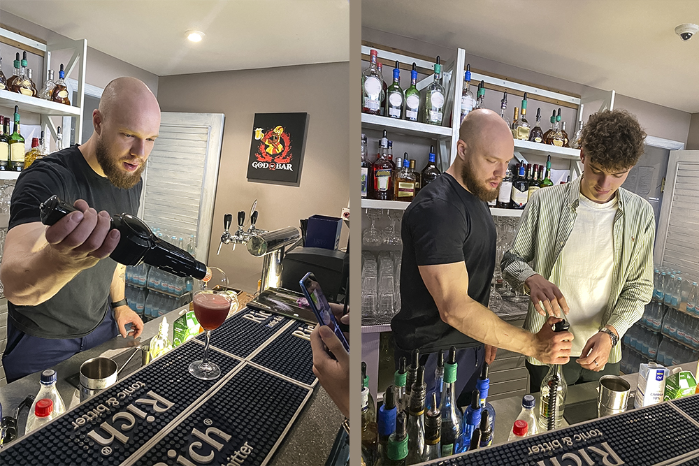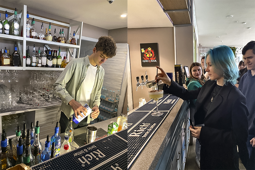 Во время экскурсии по торговому залу ресторана студенты познакомились с тонкостями организации обслуживания, бармен Евгений Еськов провел мастер-класс по приготовлению коктейлей методом «Шейк».