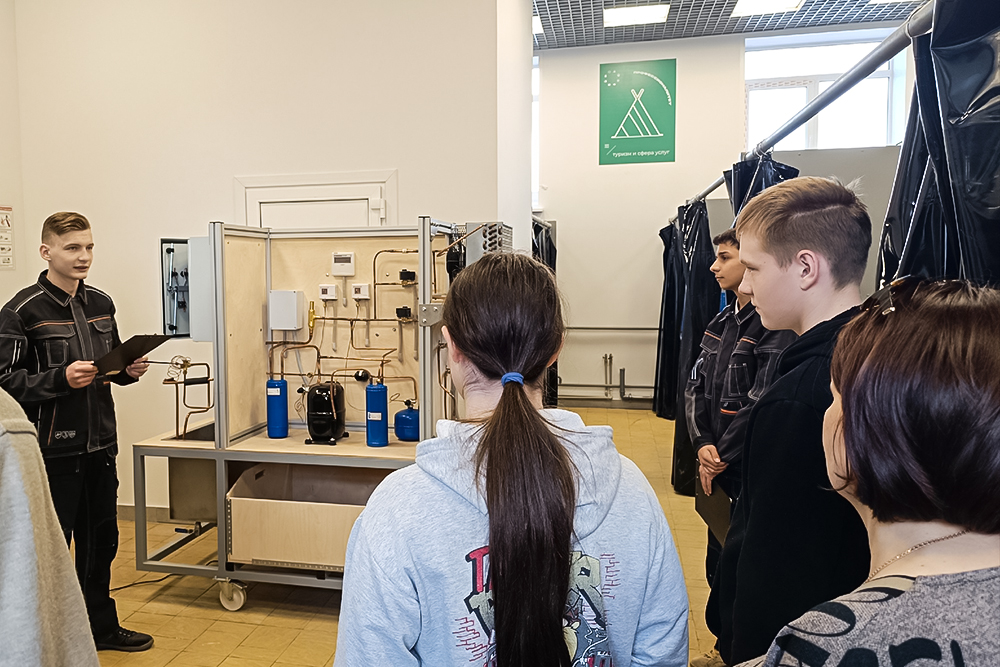 в лабораториях специальности "Монтаж, техническое обслуживание, эксплуатация и ремонт промышленного оборудования" участники Единого дня открытых дверей узнали от преподавателей Максима Александровича Шинакова и Андрея Михайловича Беседина об особенностях обучения по данной специальности;