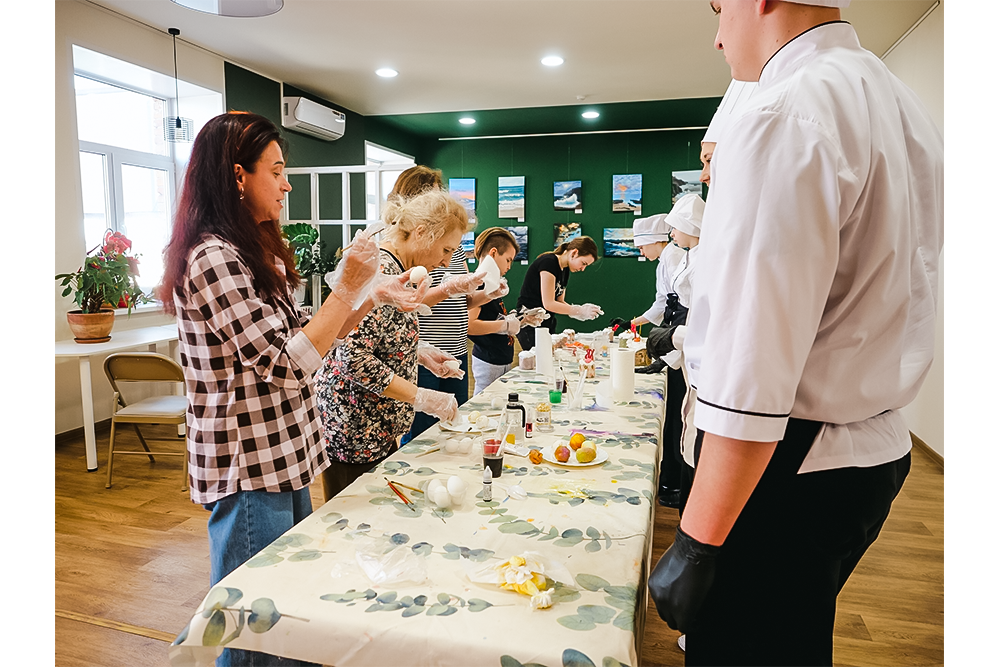 В рамках мастер-класса участники узнали о различных техниках декорирования яиц с использованием натуральных красителей, пищевого золота и традиционных узоров.