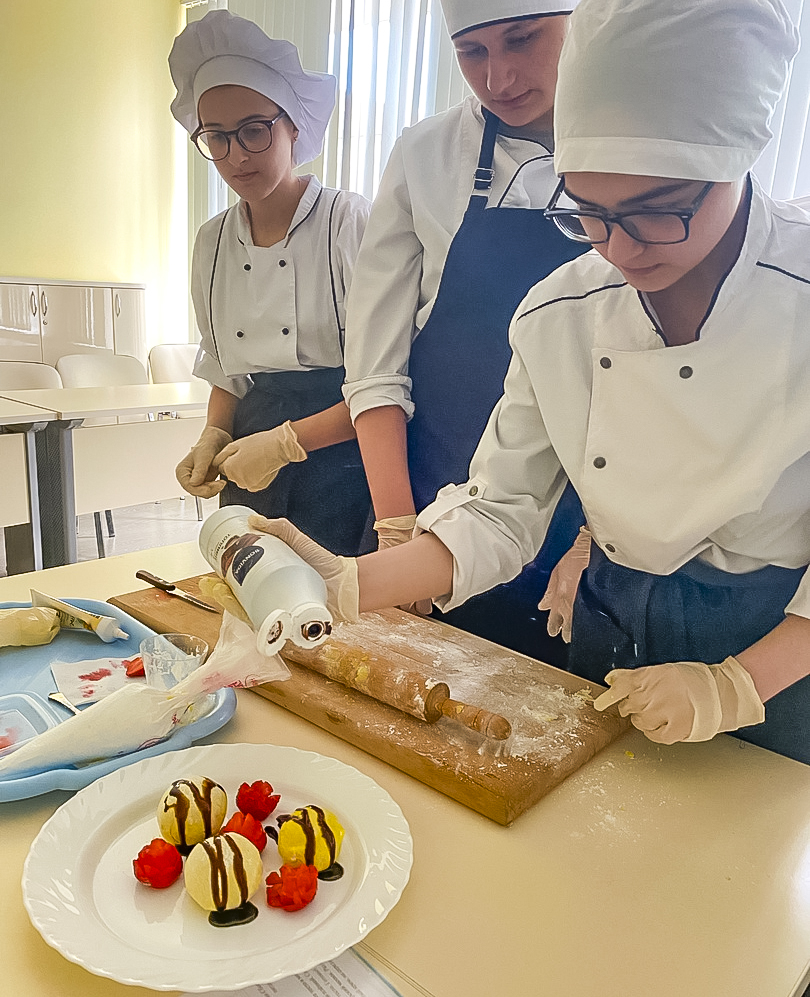 Сначала студенты выполнили тренировочные упражнения мастер-класса, затем интерактивные задания, которые помогли им вспомнить историю и технологию десерта.