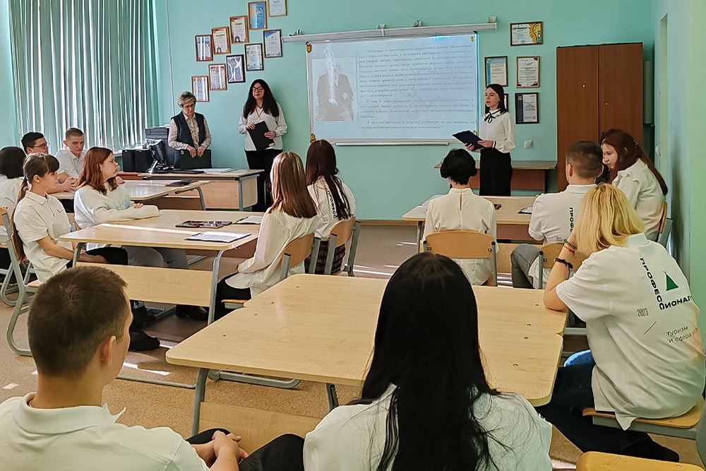 Советник директора по воспитанию Баландина О.В. и преподаватель химии Широконосова О.В. провели для студентов группы 1 Спец "Б" тематический день "Великий сын земли русской".