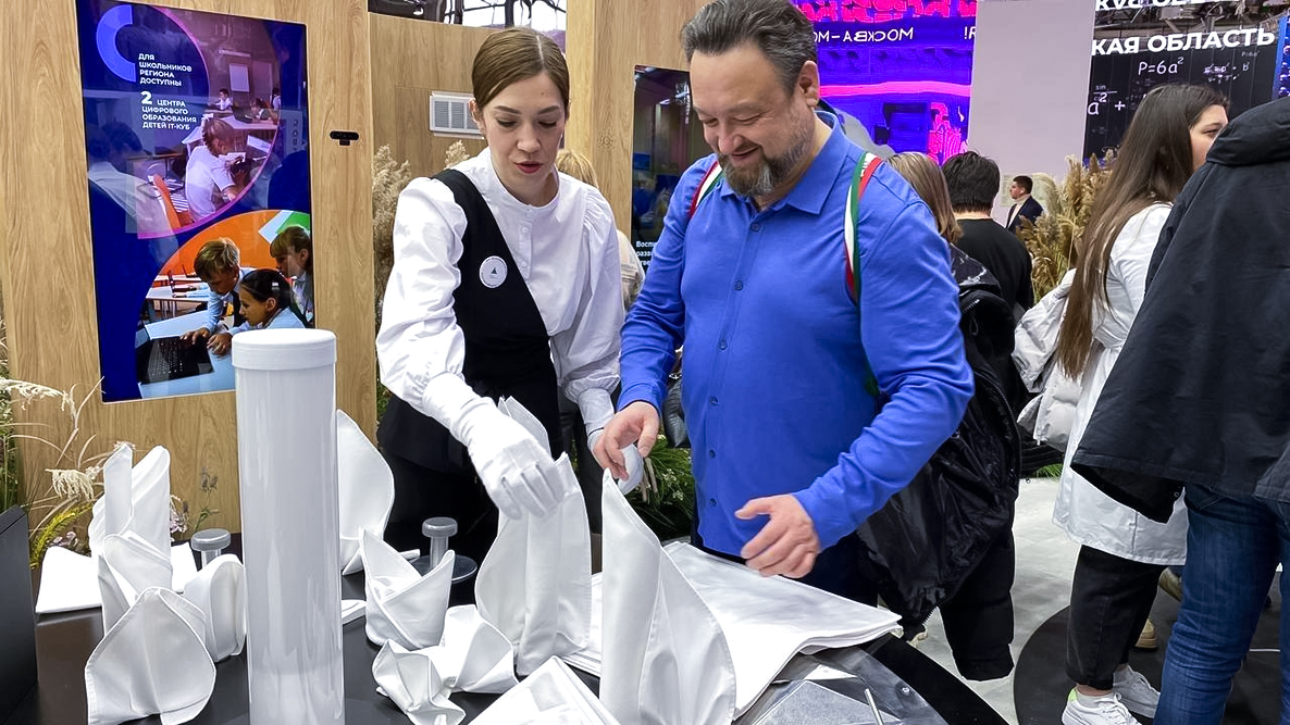 В ходе увлекательного мастер-класса, представленного на выставке, посетители познакомились с особенностями тематической сервировки стола в стиле эклектика и попробовали свои силы в оригинальных способах складывания салфеток.