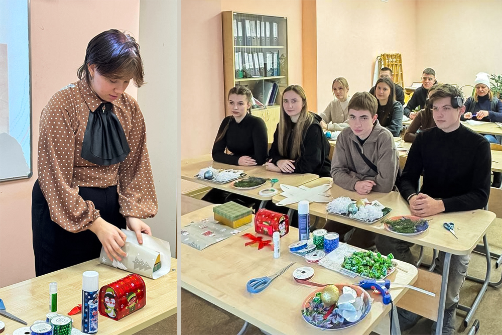 В рамках профориентационного проекта техникума, направленного на раскрытие талантов и осознанный выбор карьеры, для школьников 10 А класса МБОУ "СОШ № 47 имени С.В. Широбокова" проведена профессиональная проба "Предпродажная подготовка елочных игрушек (упаковка товара в подарочные наборы)".