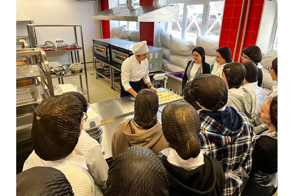 Посвящение в профессию продолжилось мастер-классом по изготовлению сладких кондитерских изделий. Мастерством выпечки поделилась преподаватель Яковлева Елизавета Михайловна, а тонкостями работы с тестом – наставники, студенты-старшекурсники.